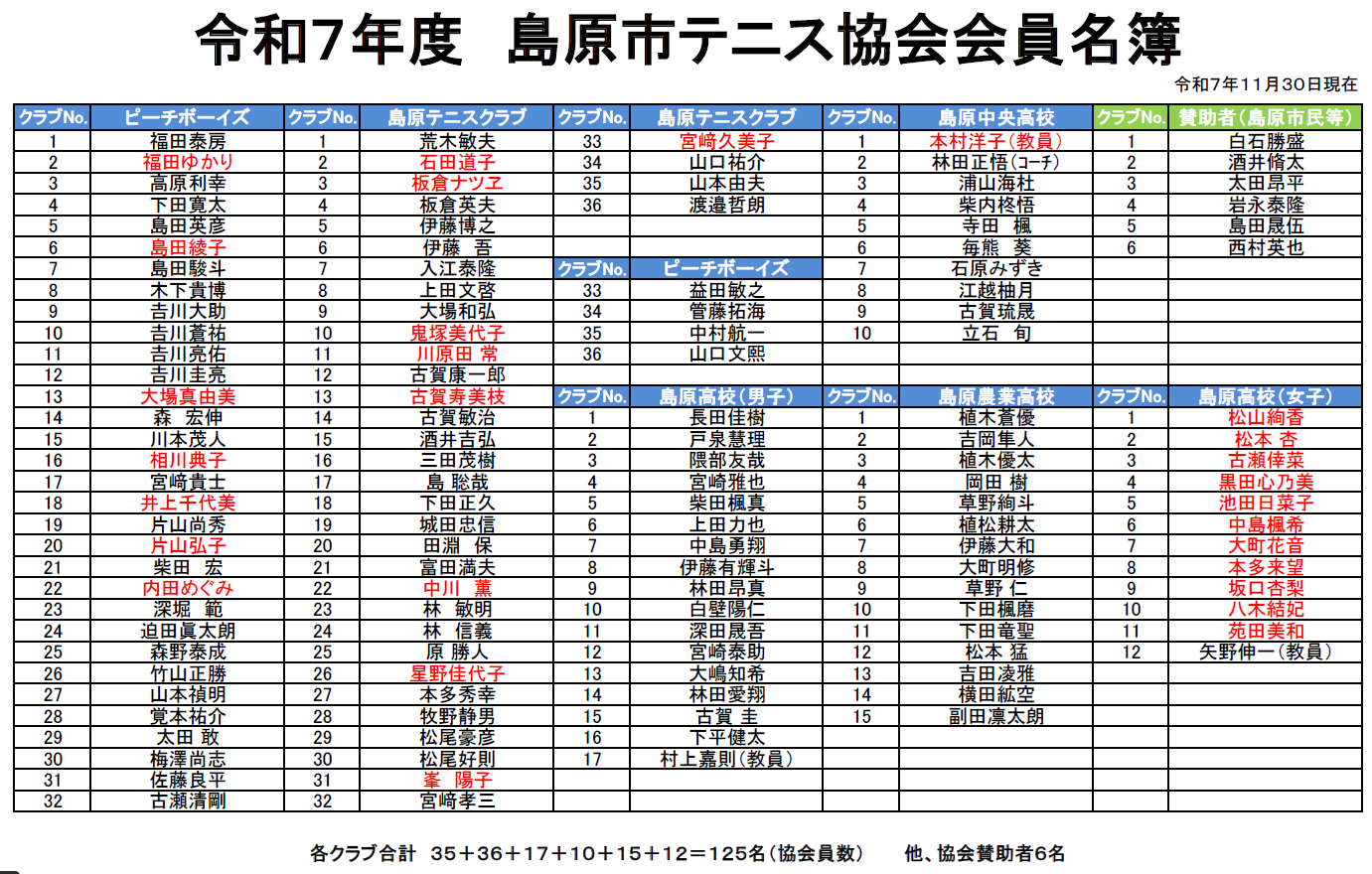 (注:協会登録者のみフルネーム記載)