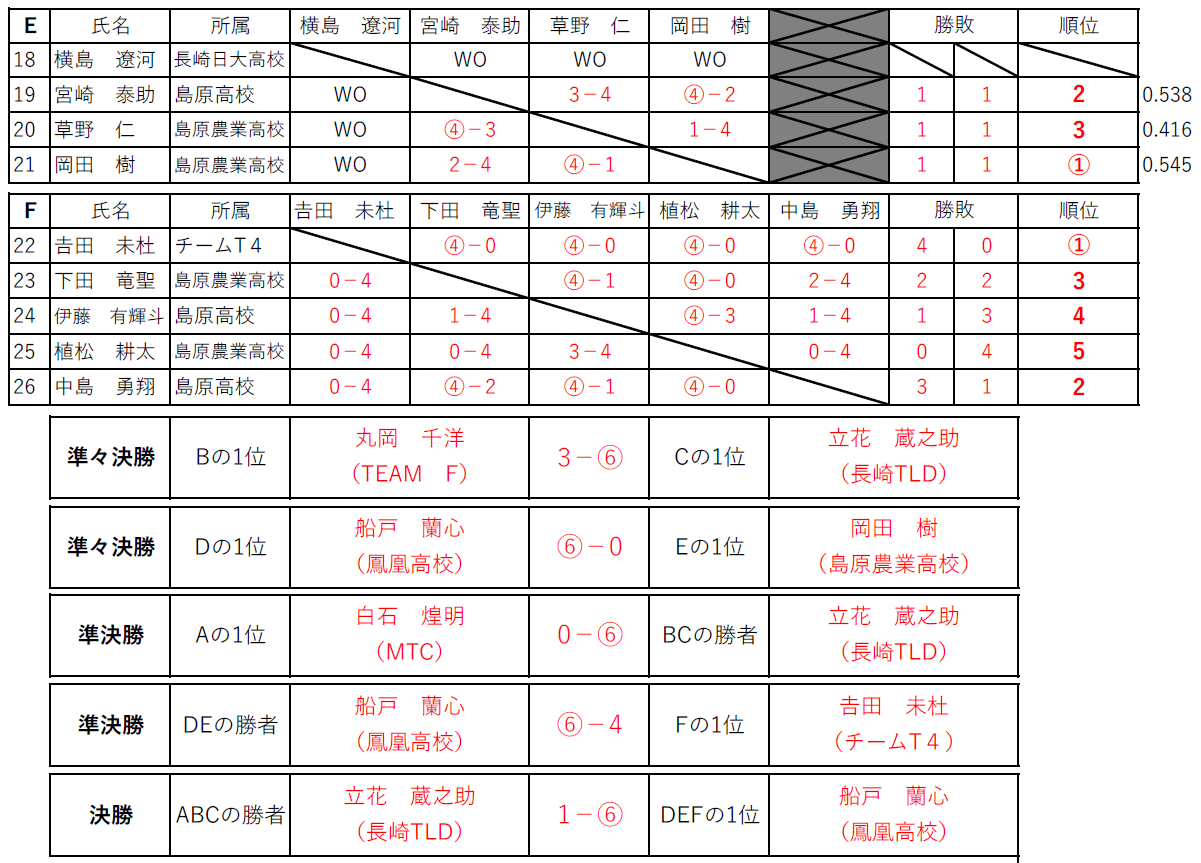 ※ 【南島原市テニス協会】主催大会のため、結果の紹介(コメント)は島原ジュニア所属選手のみとなります。予めご了承下さい。(結果データ・写真提供:南島原ジュニアOB 本村 様)