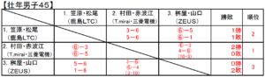 (45複 山本・佐藤ペア 0-8 敗退)