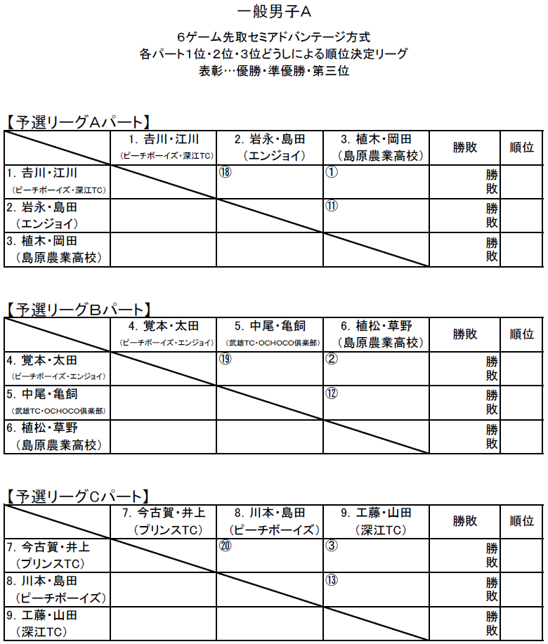 今週末に開催される【第49回島原選手権ダブルス大会】のドロー・進行発表がありましたので、掲載致します。