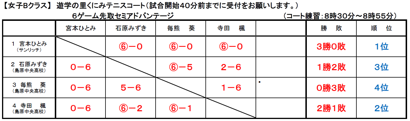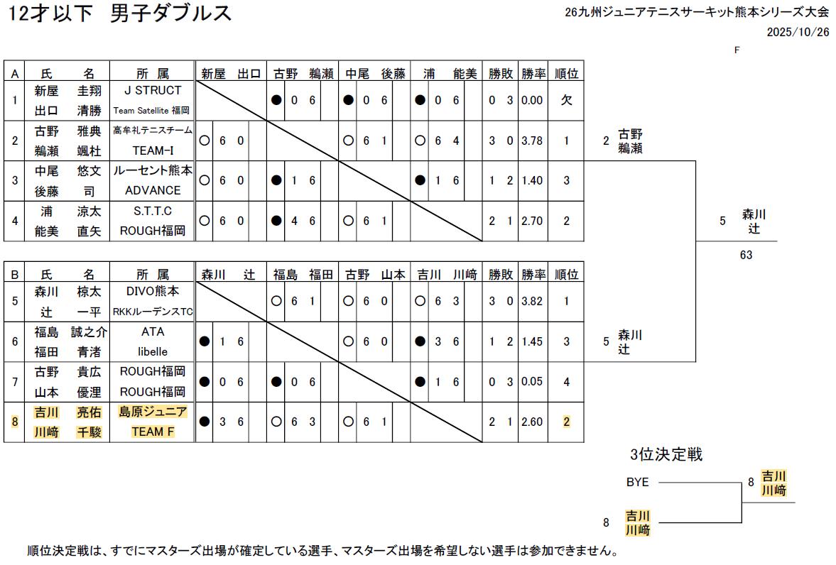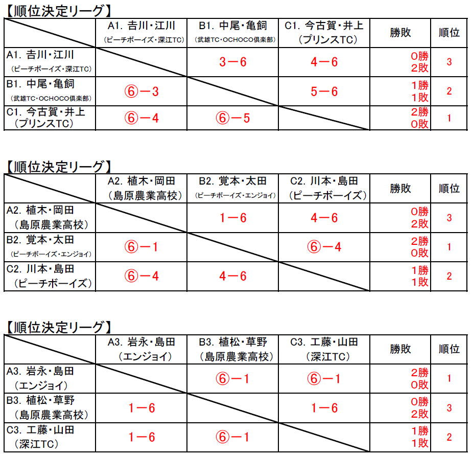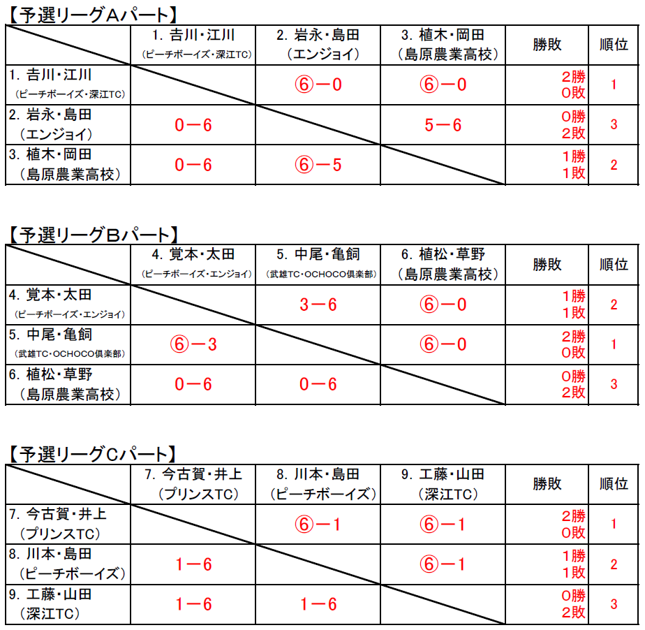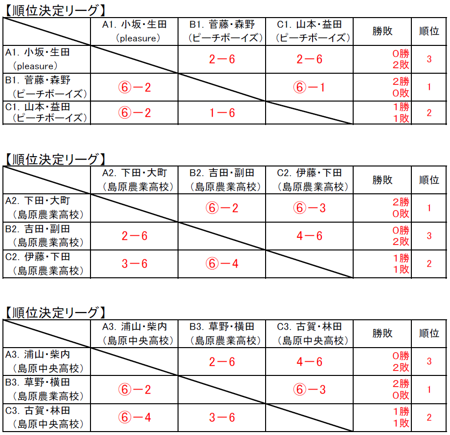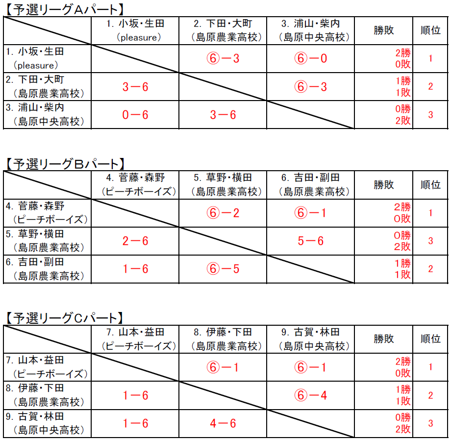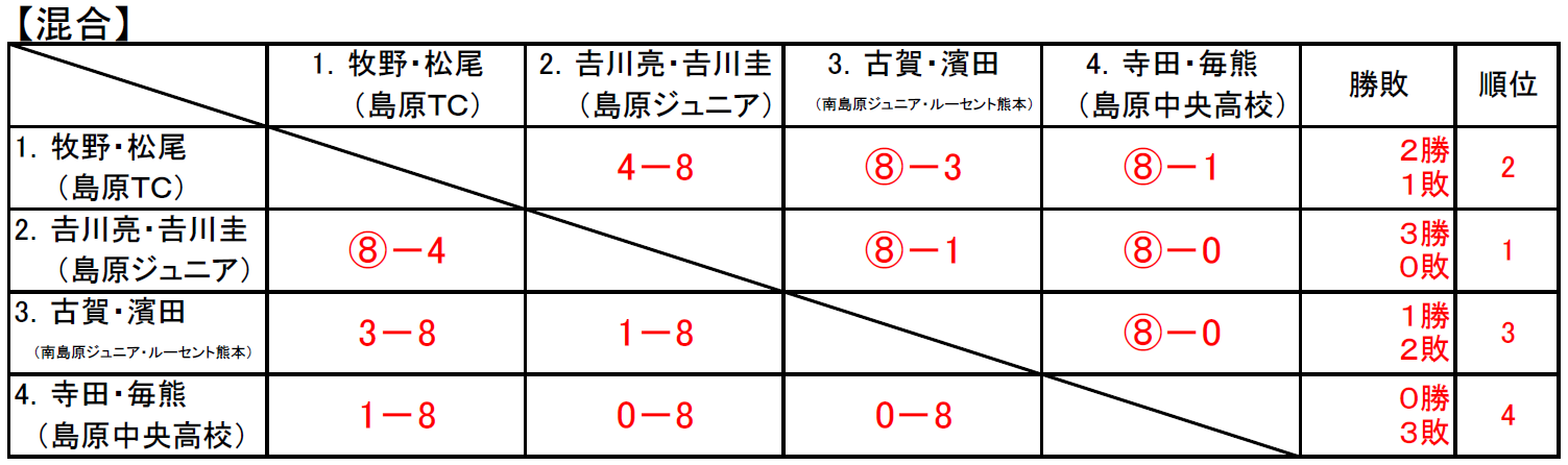 島原Jr.の結果については下記のとおり。