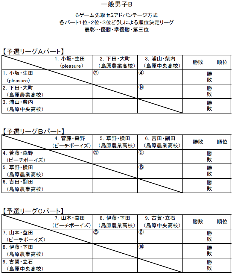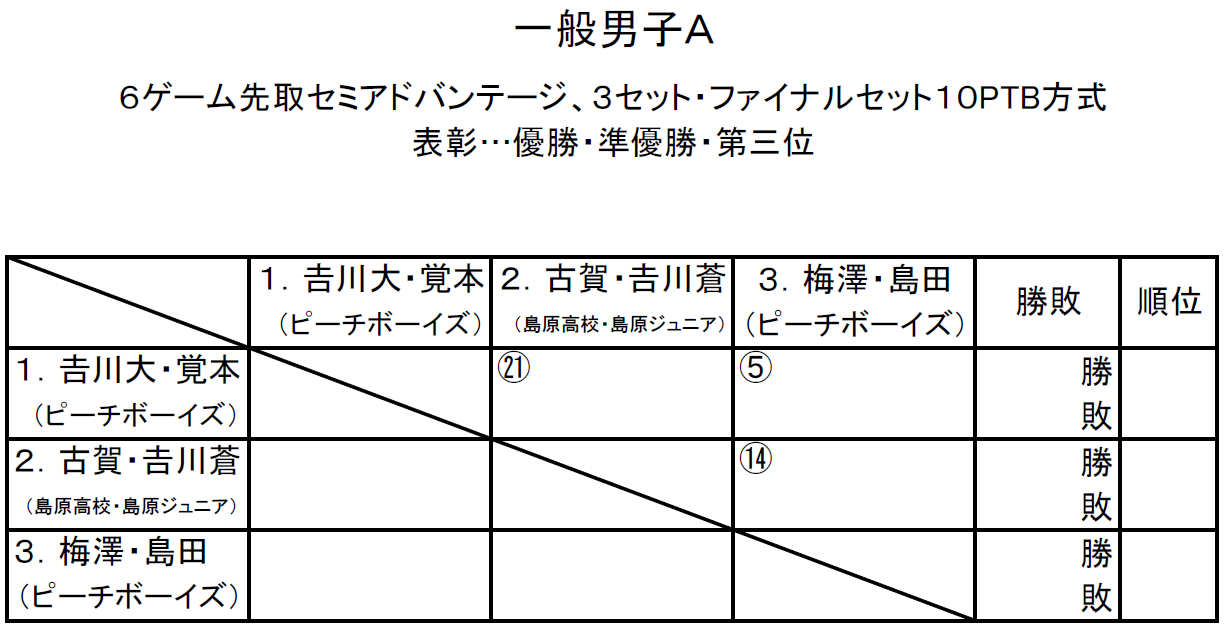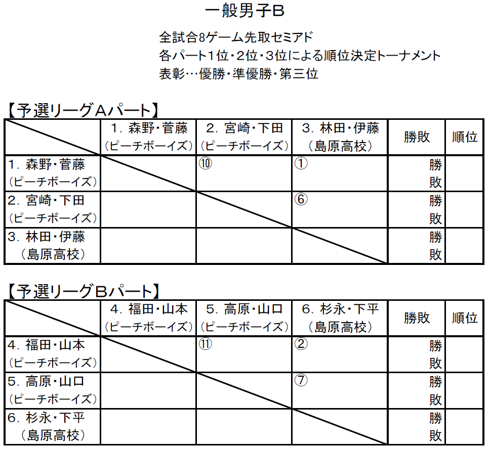 【ドロー】『第49回島原選手権ダブルス大会』のドローが発表されました!