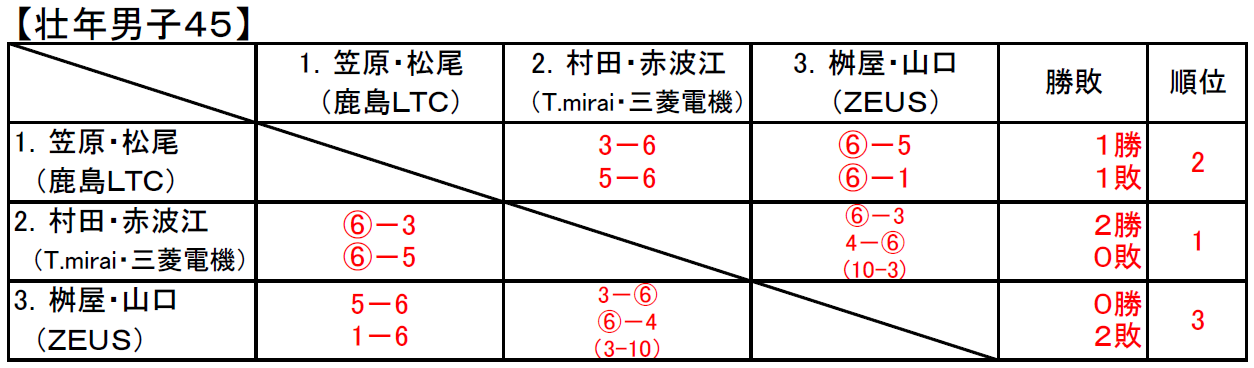 (45複 山本・佐藤ペア 0-8 敗退)