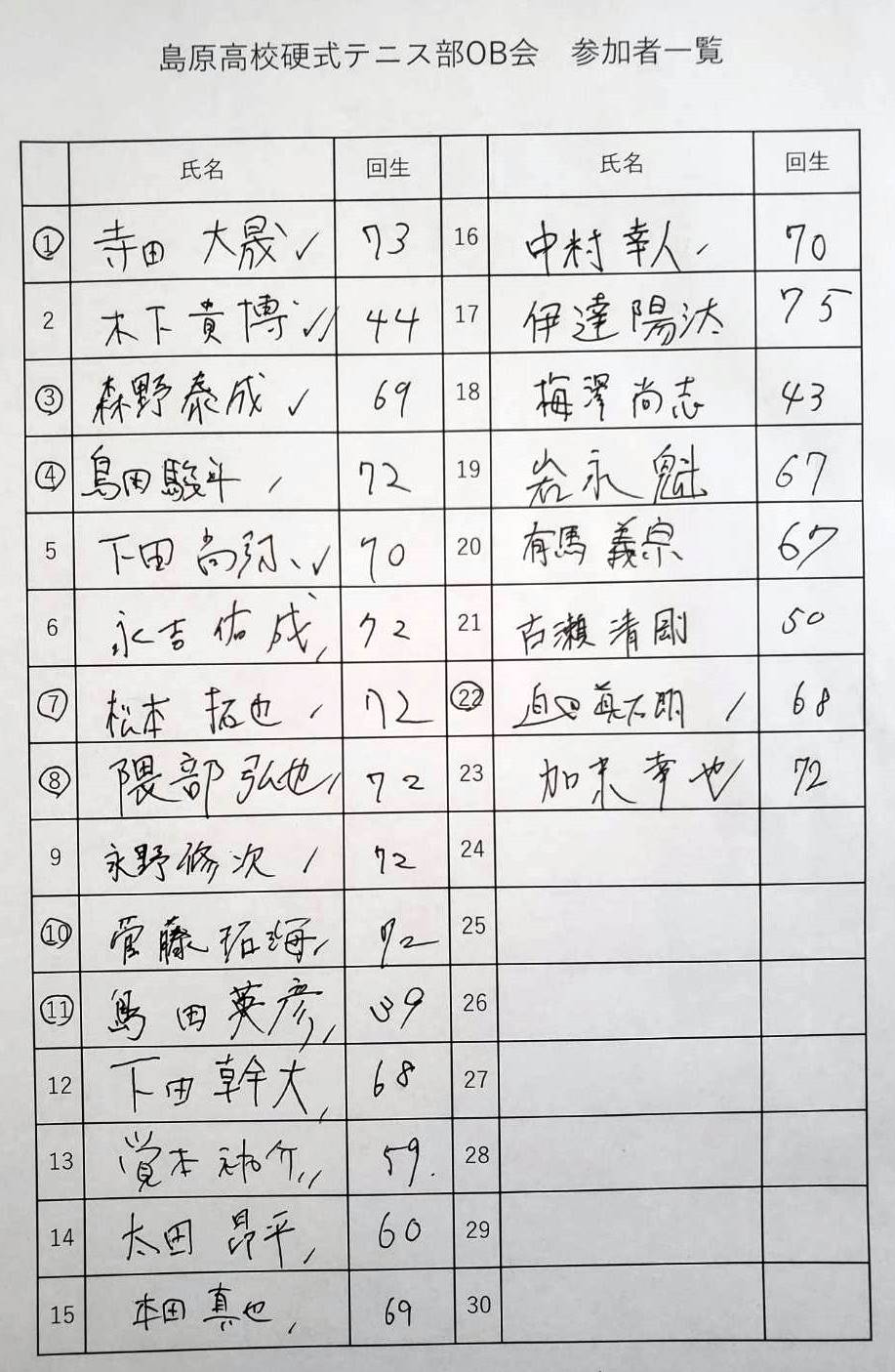 【結果】『島原高校硬式テニス部OB会』の開催結果について