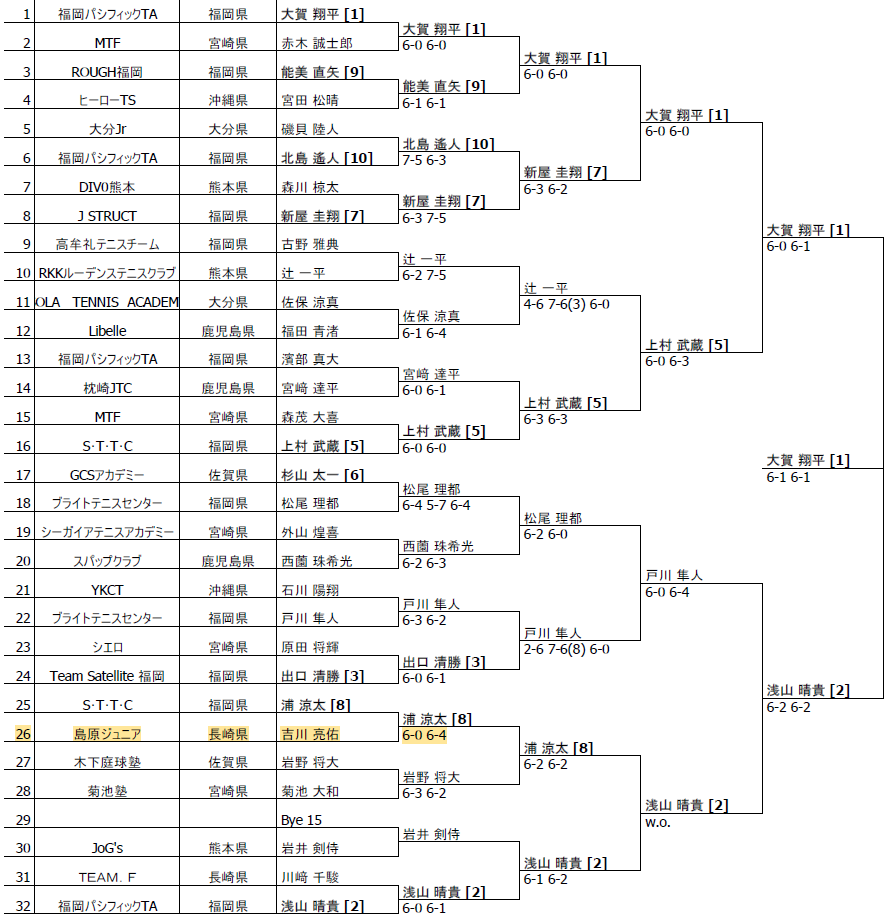 ※ 今大会は【九州テニス協会】主催のため、結果の詳細等は こちら からも御確認できます。