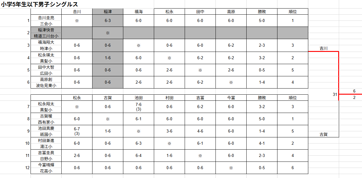吉川亮佑(三会小5) 初戦敗退